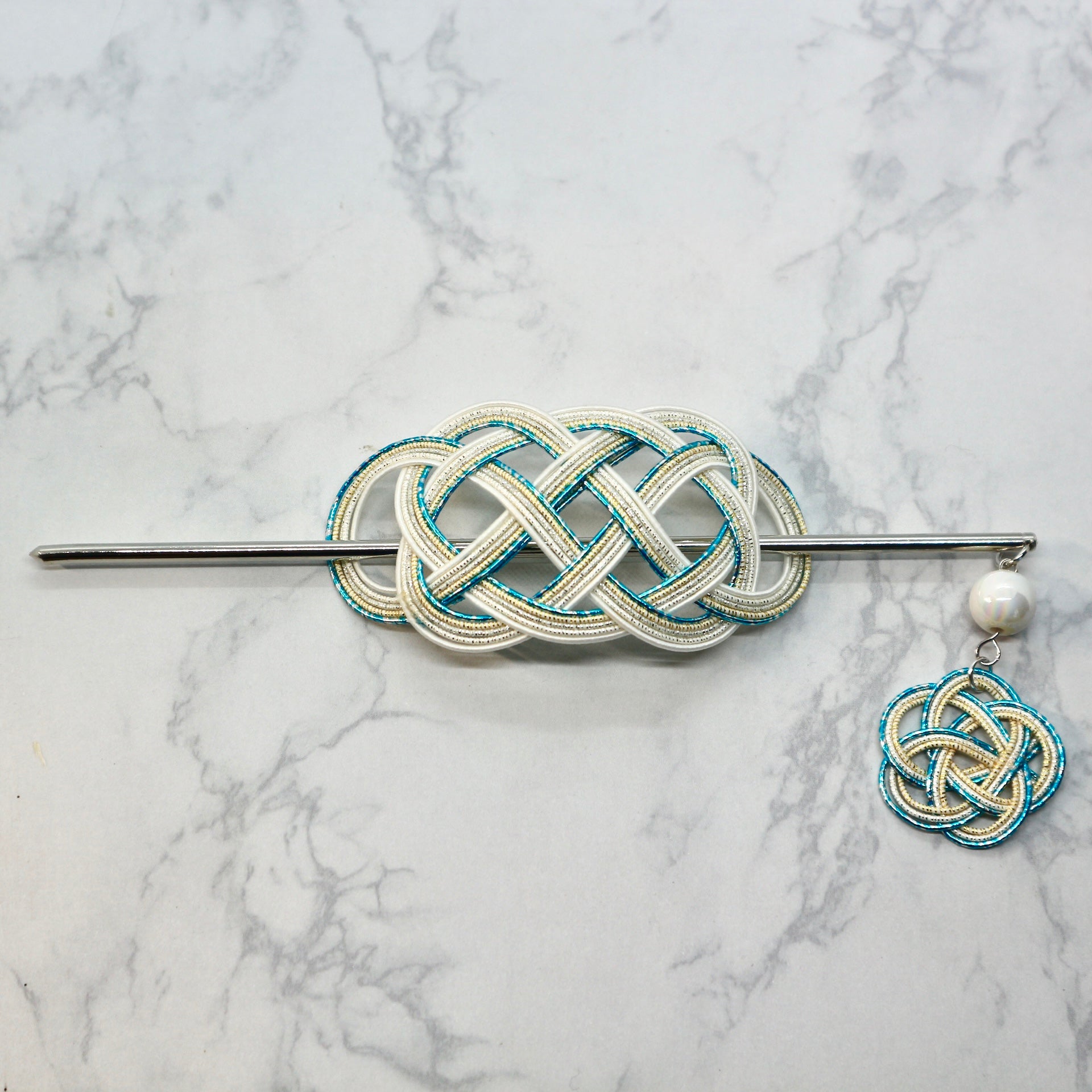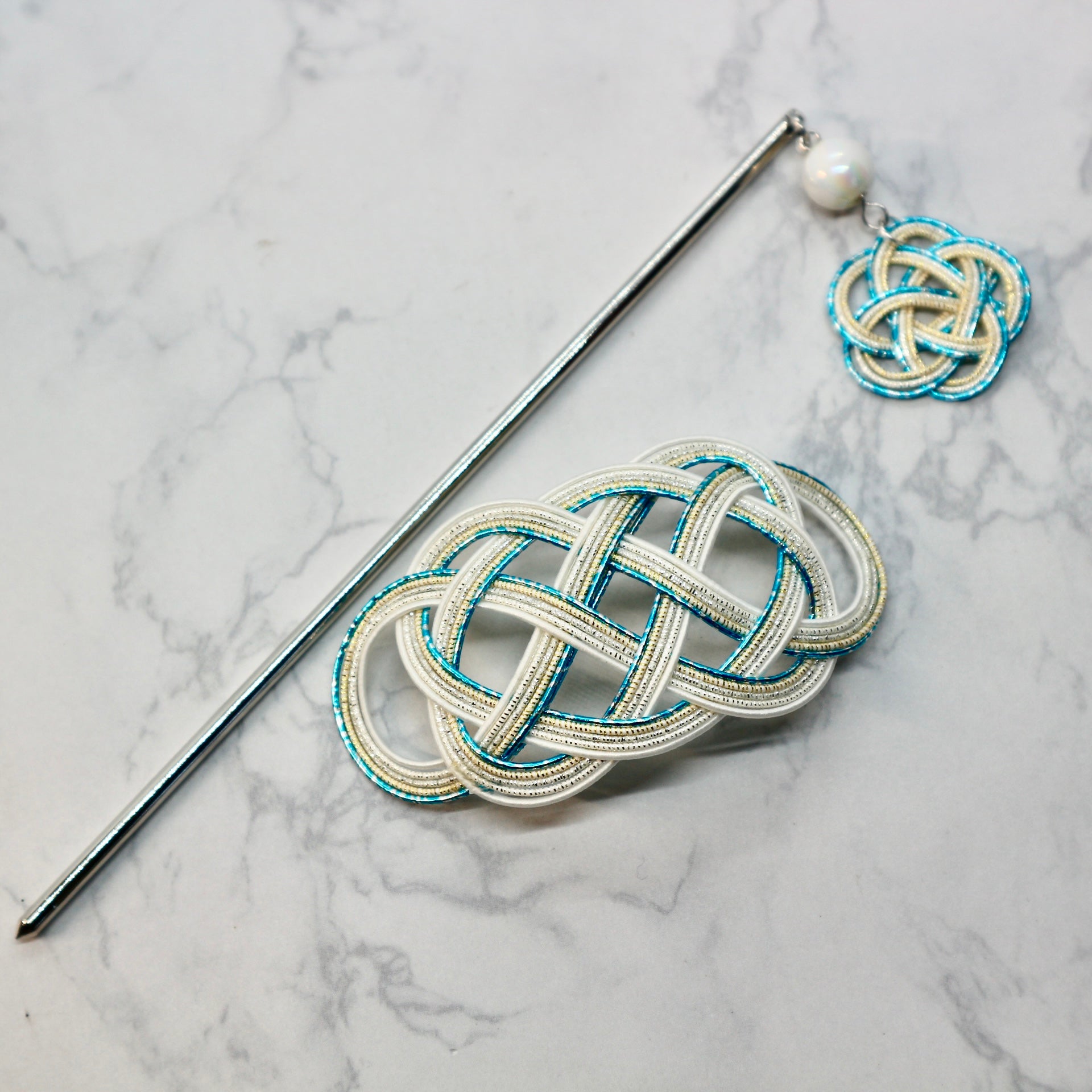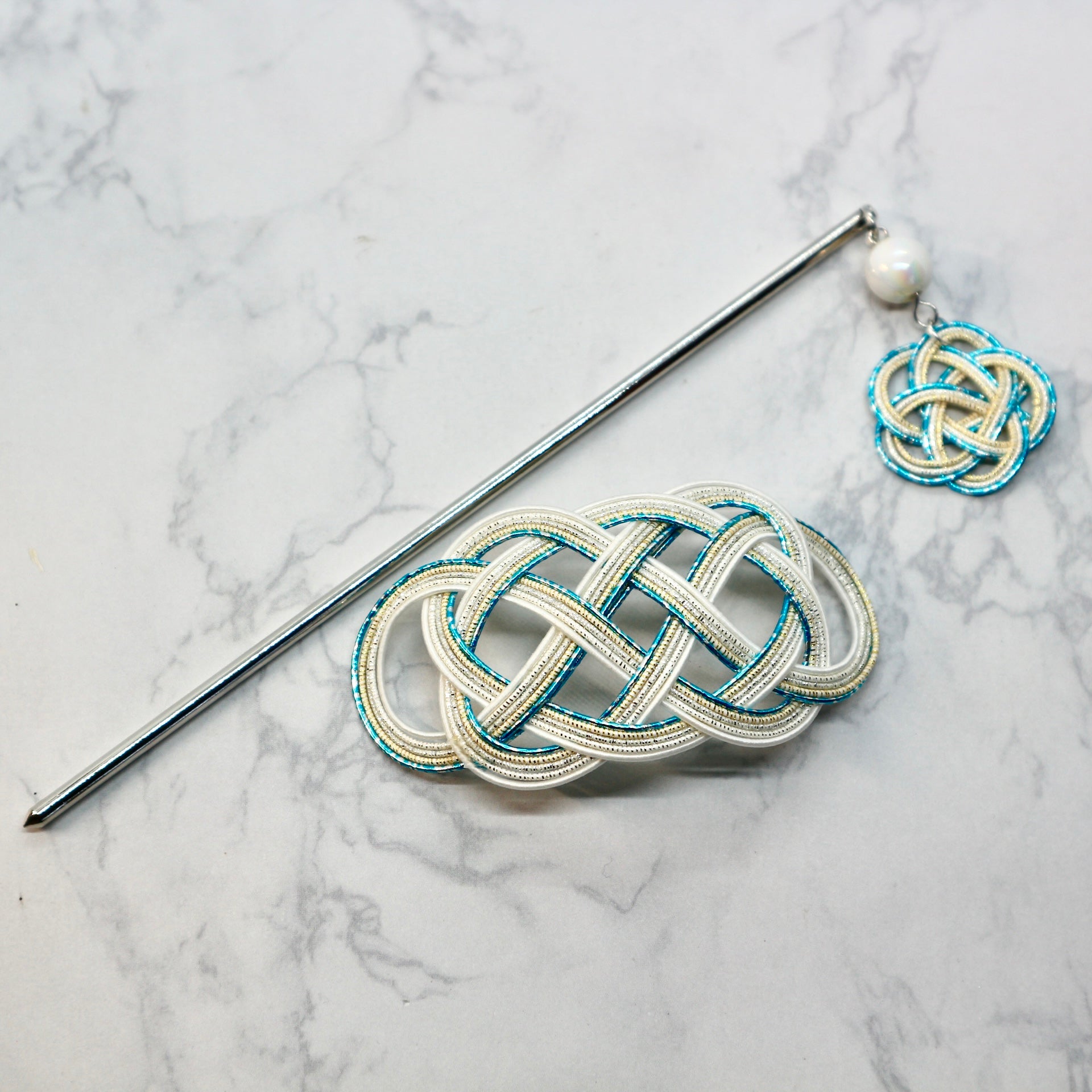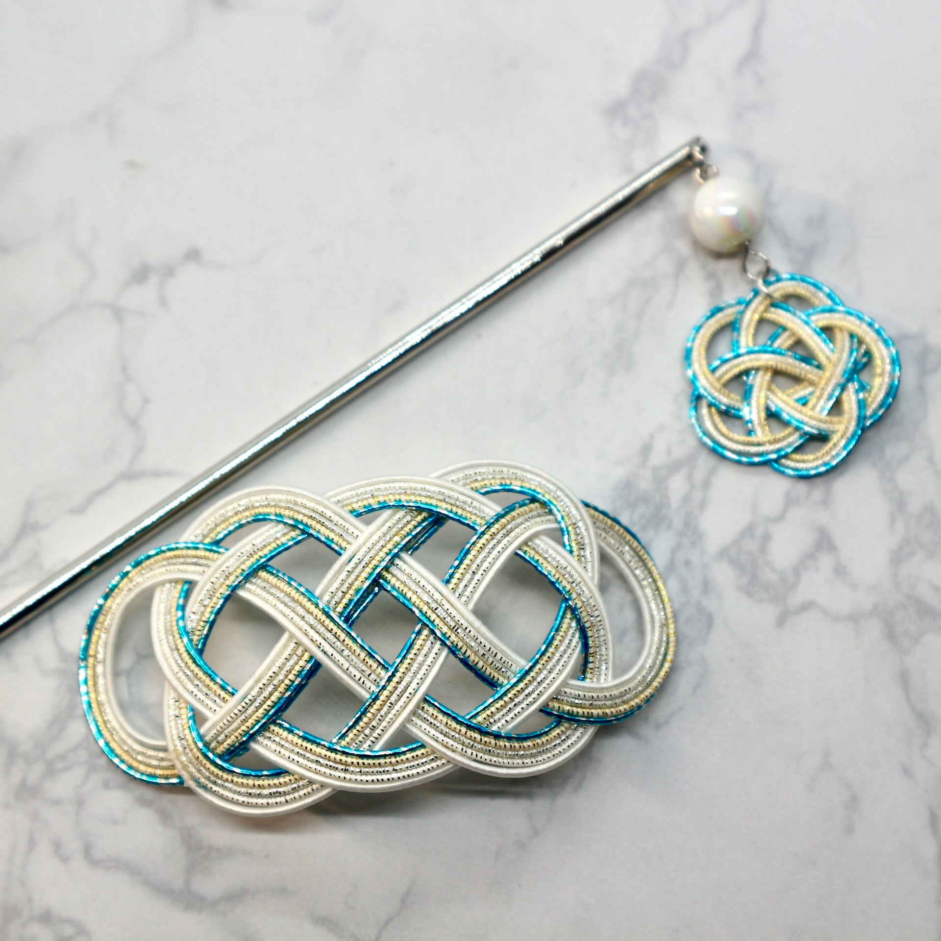 水引のマジェステとかんざし(ブルー、シルバー、ホワイト)