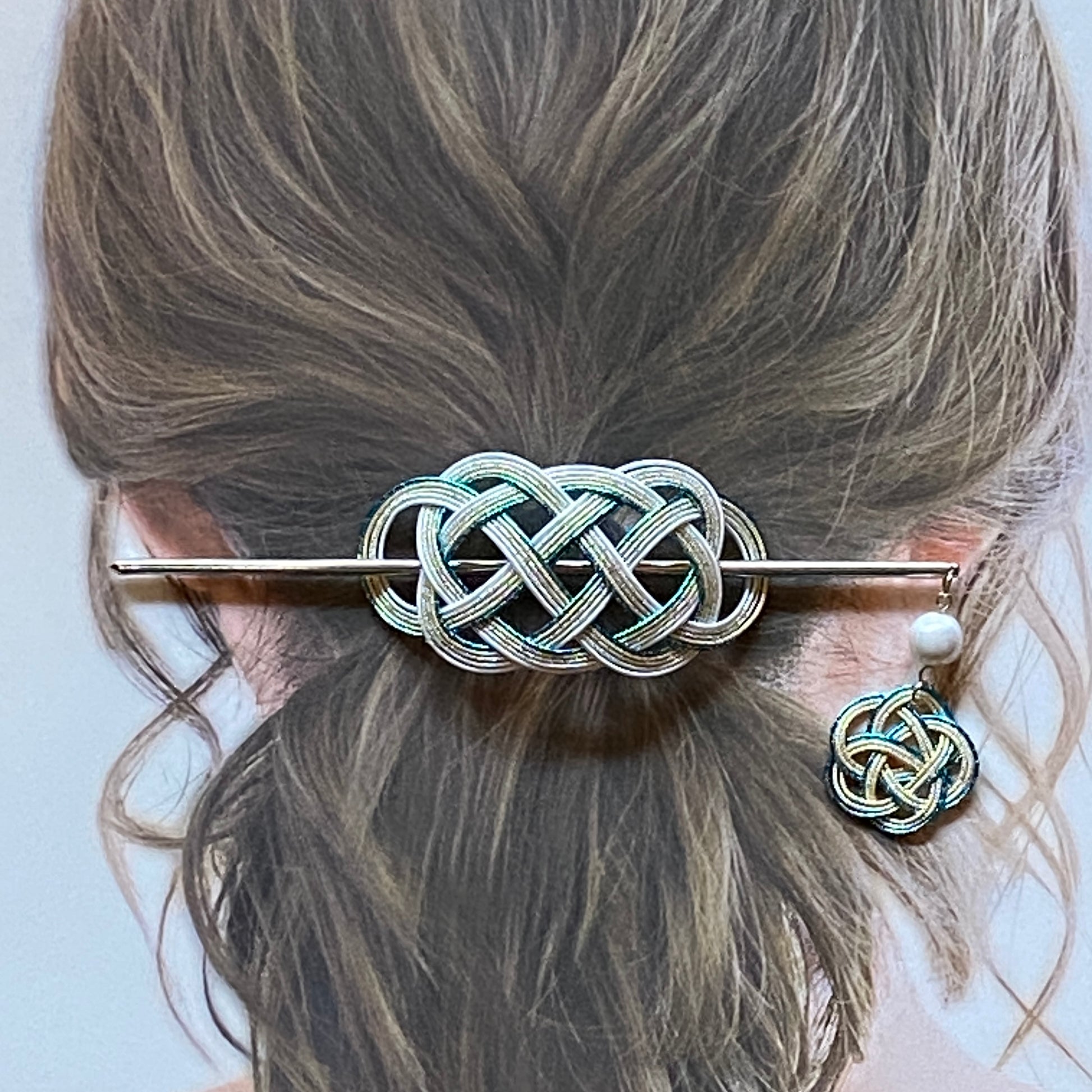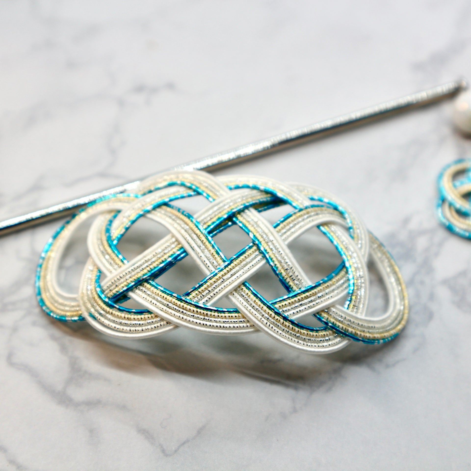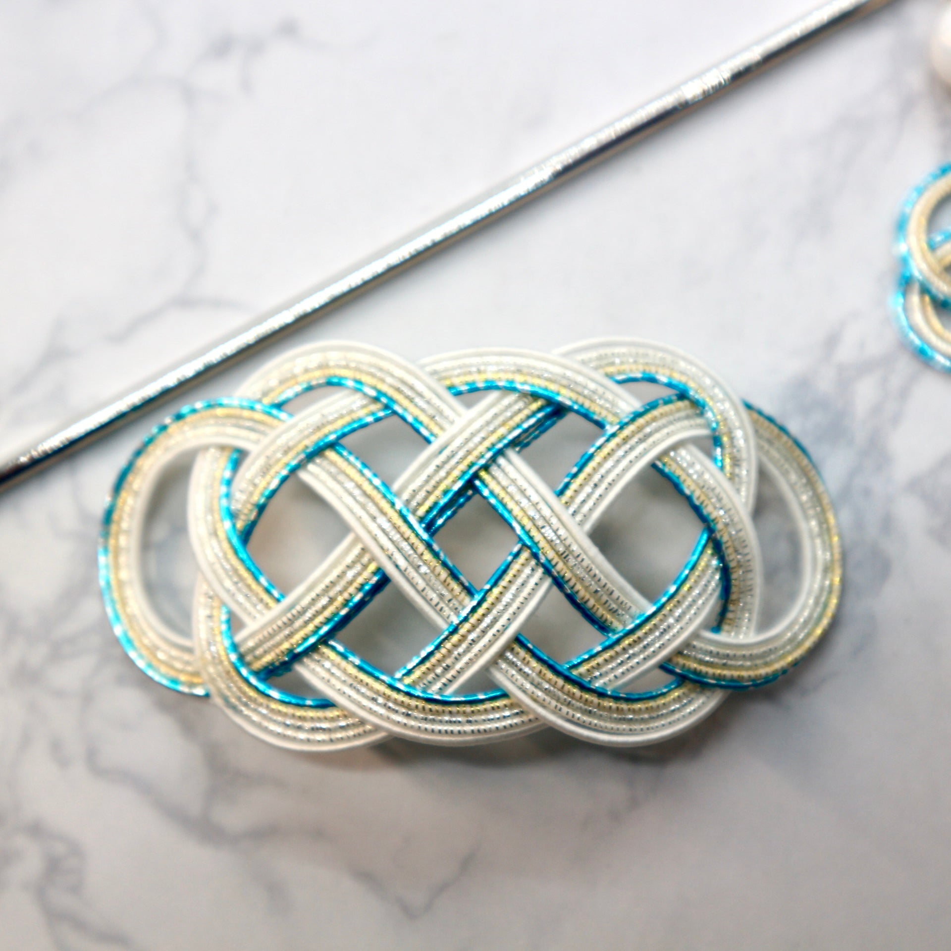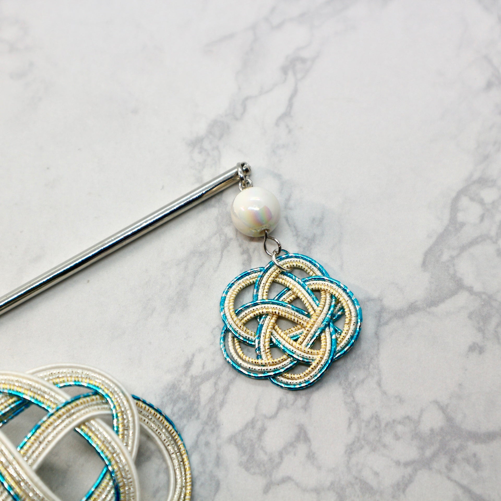 水引のマジェステとかんざし(ブルー、シルバー、ホワイト)