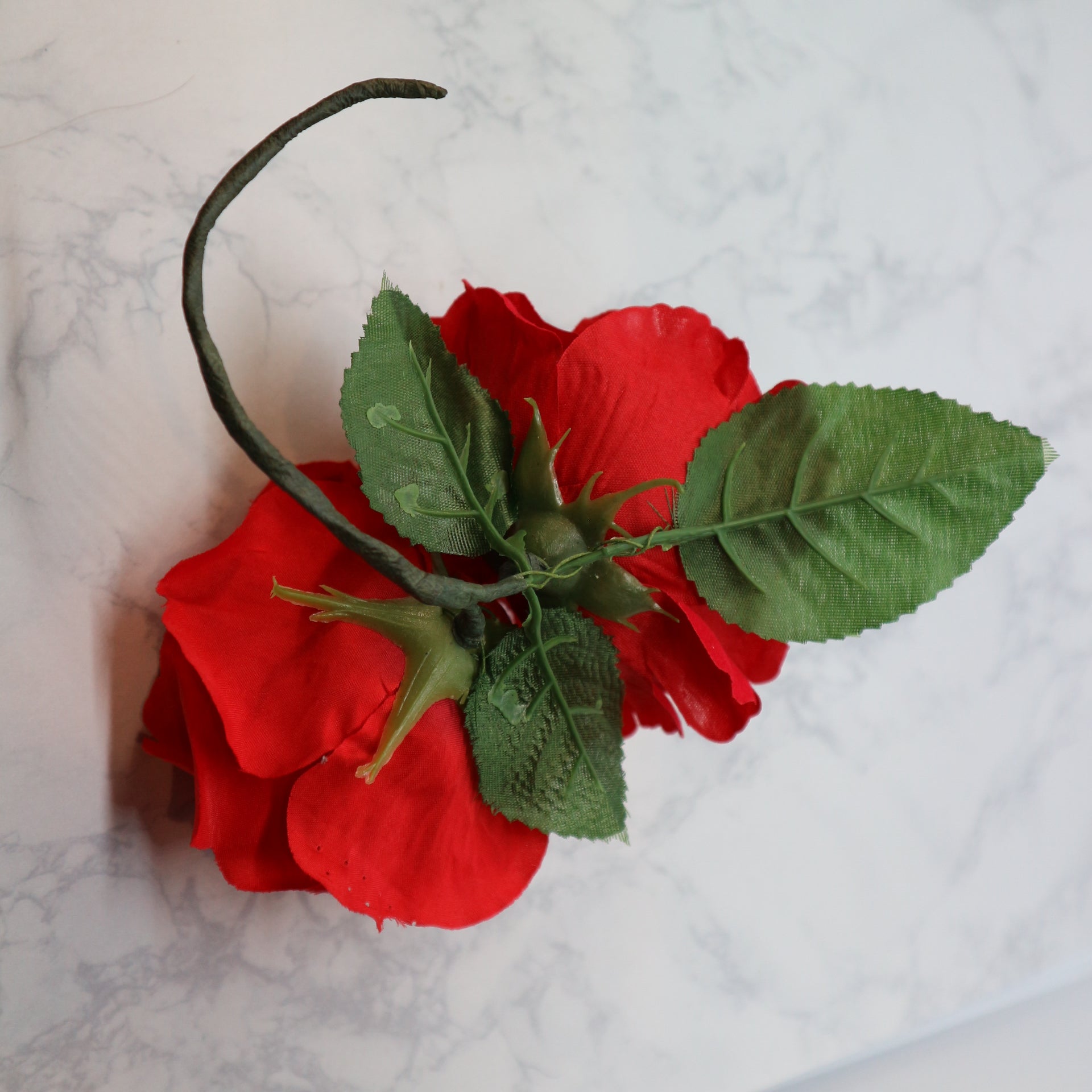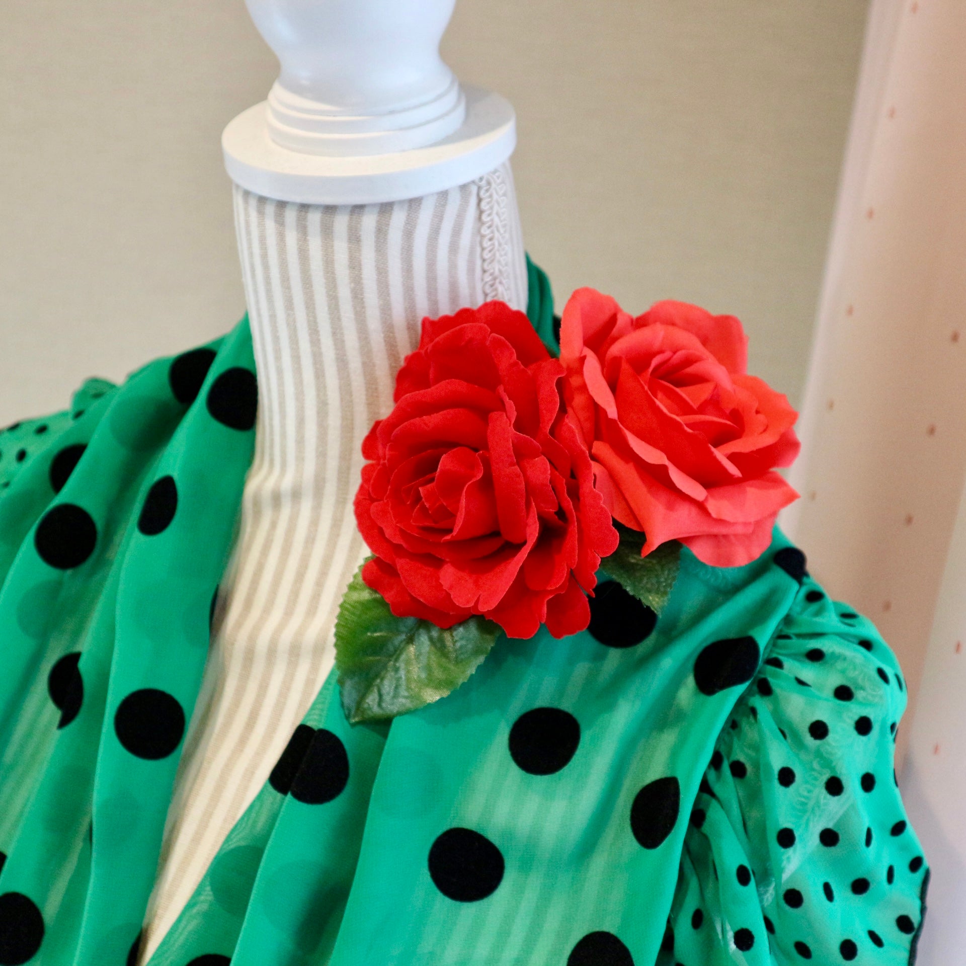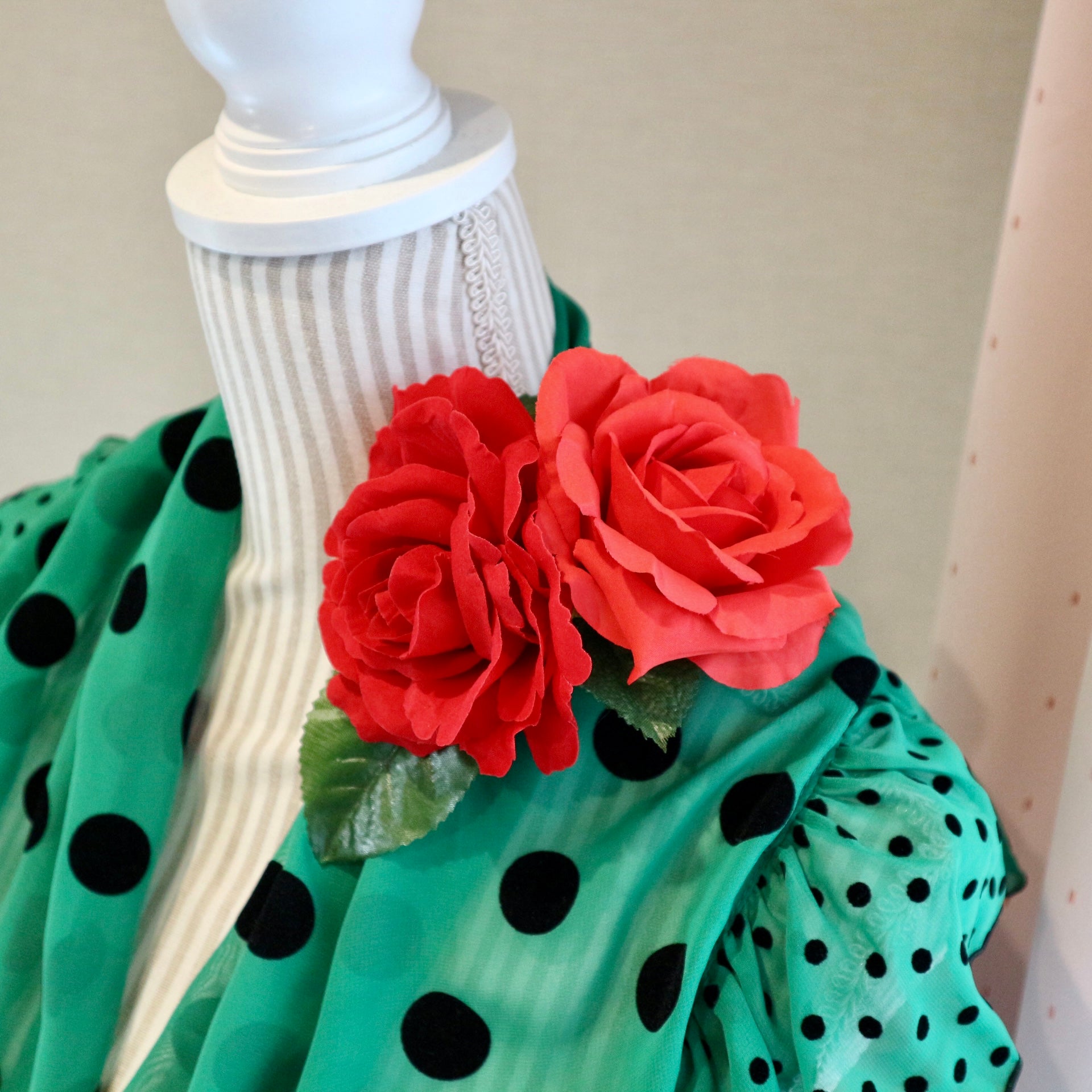 ベルベットローズ、スカーレットローズの組み合わせのフラメンコ向けの花飾り(フローレス)です。